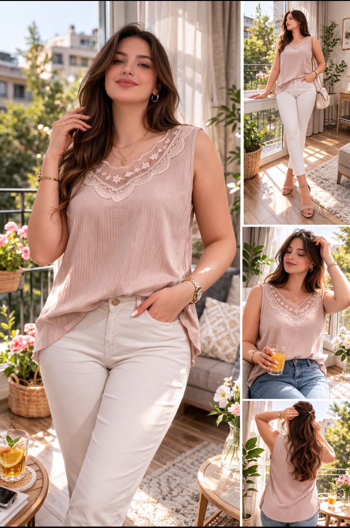تاپ یقه گیپور کرکره ای قواره دار وارداتی