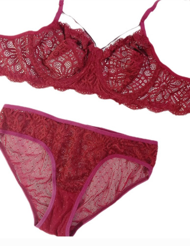 ست شورت و سوتین فنردار گیپور رنگ زرشکی