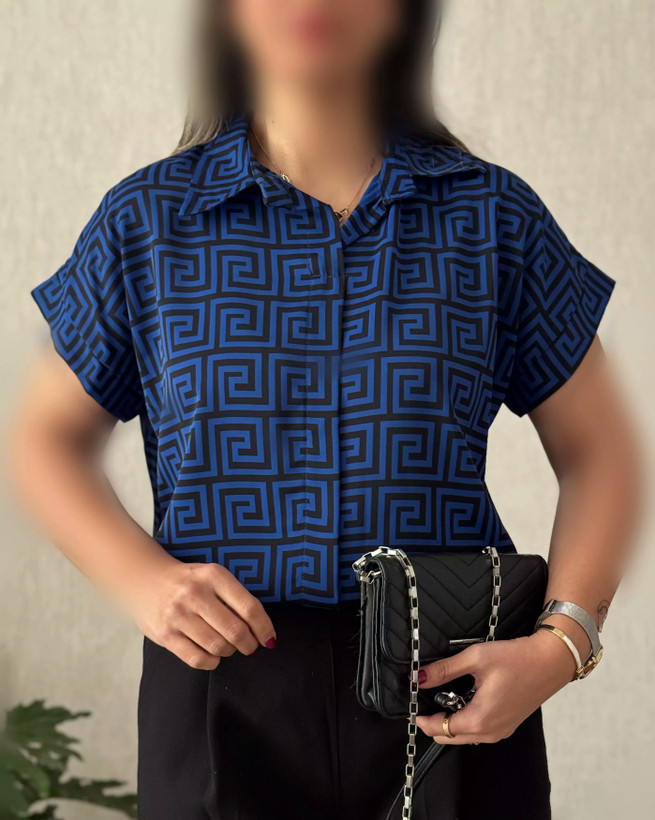 شومیز و بلوز کرپ آستین کوتاه طرحدار