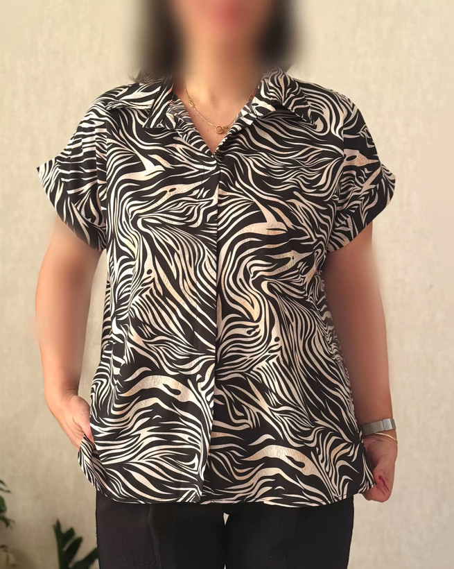 شومیز و بلوز زنانه کرپ طرحدار آستین کوتاه