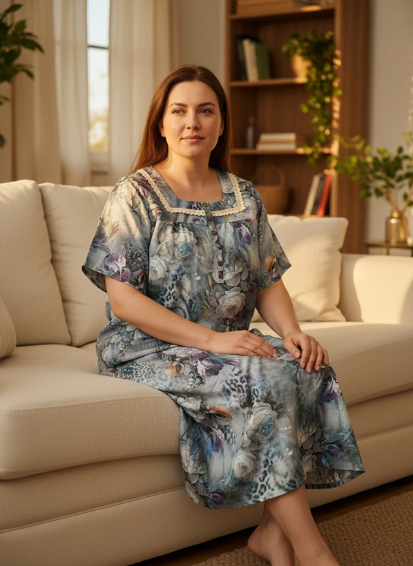 پیراهن نخی یقه خشتی زنانه