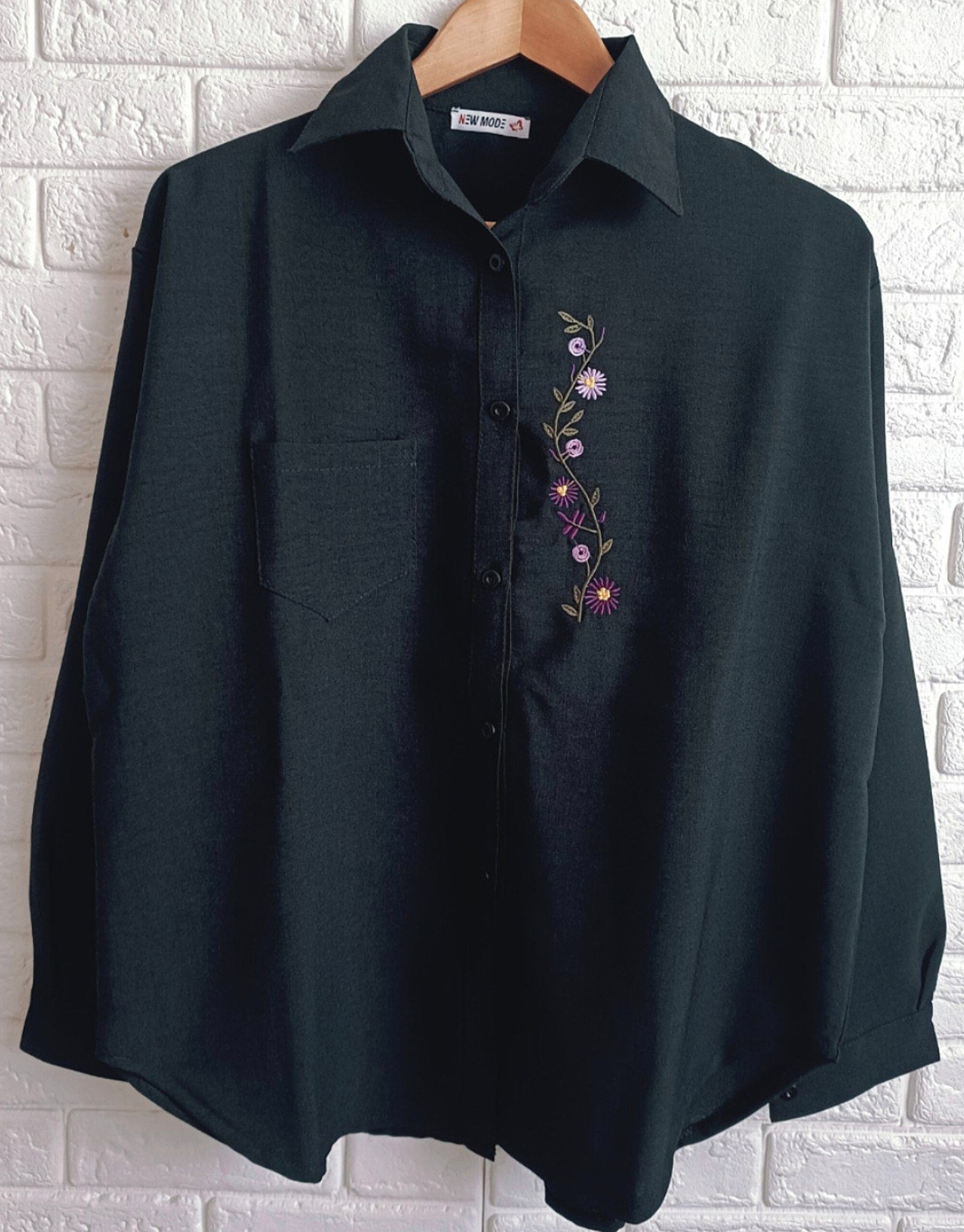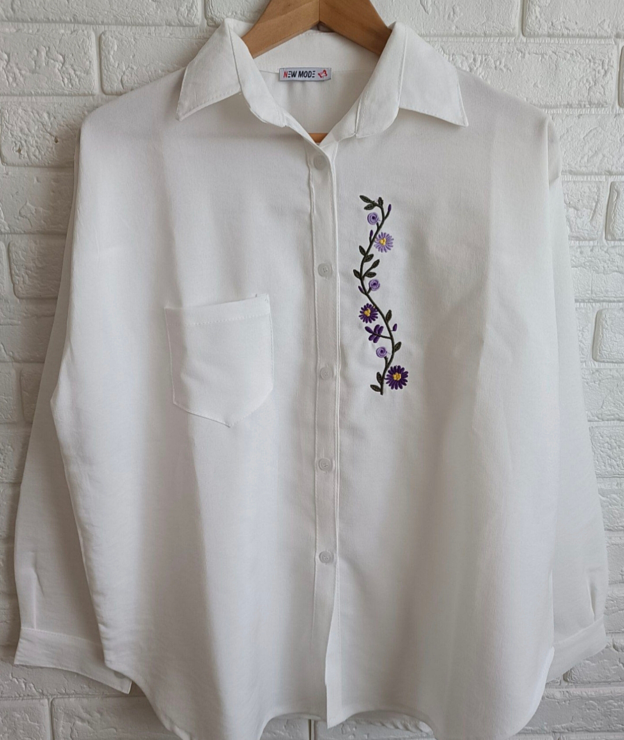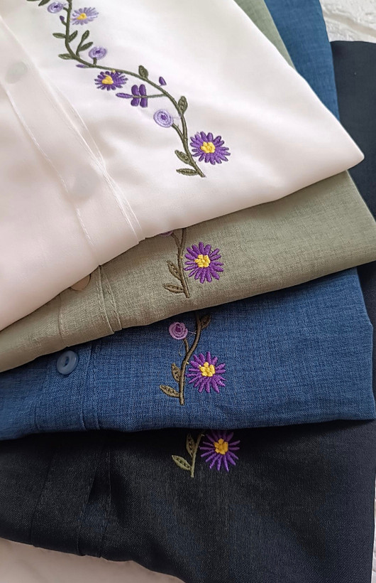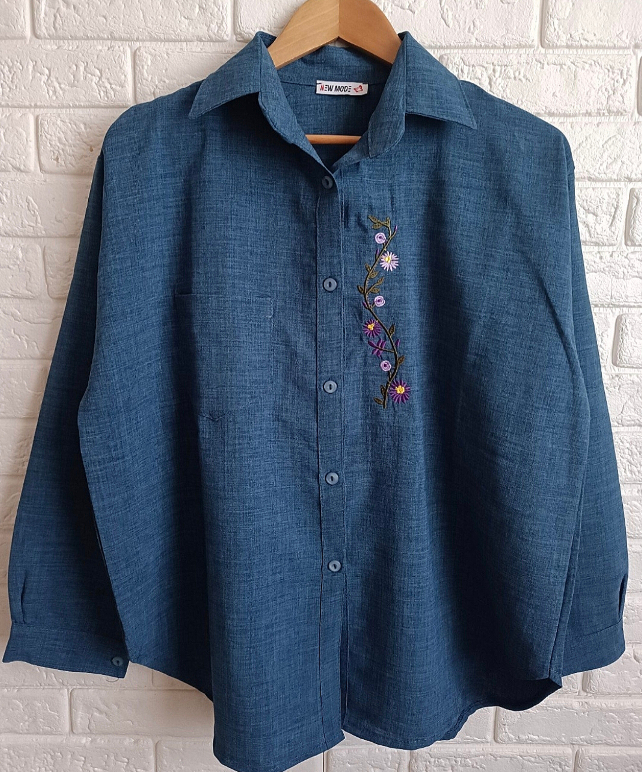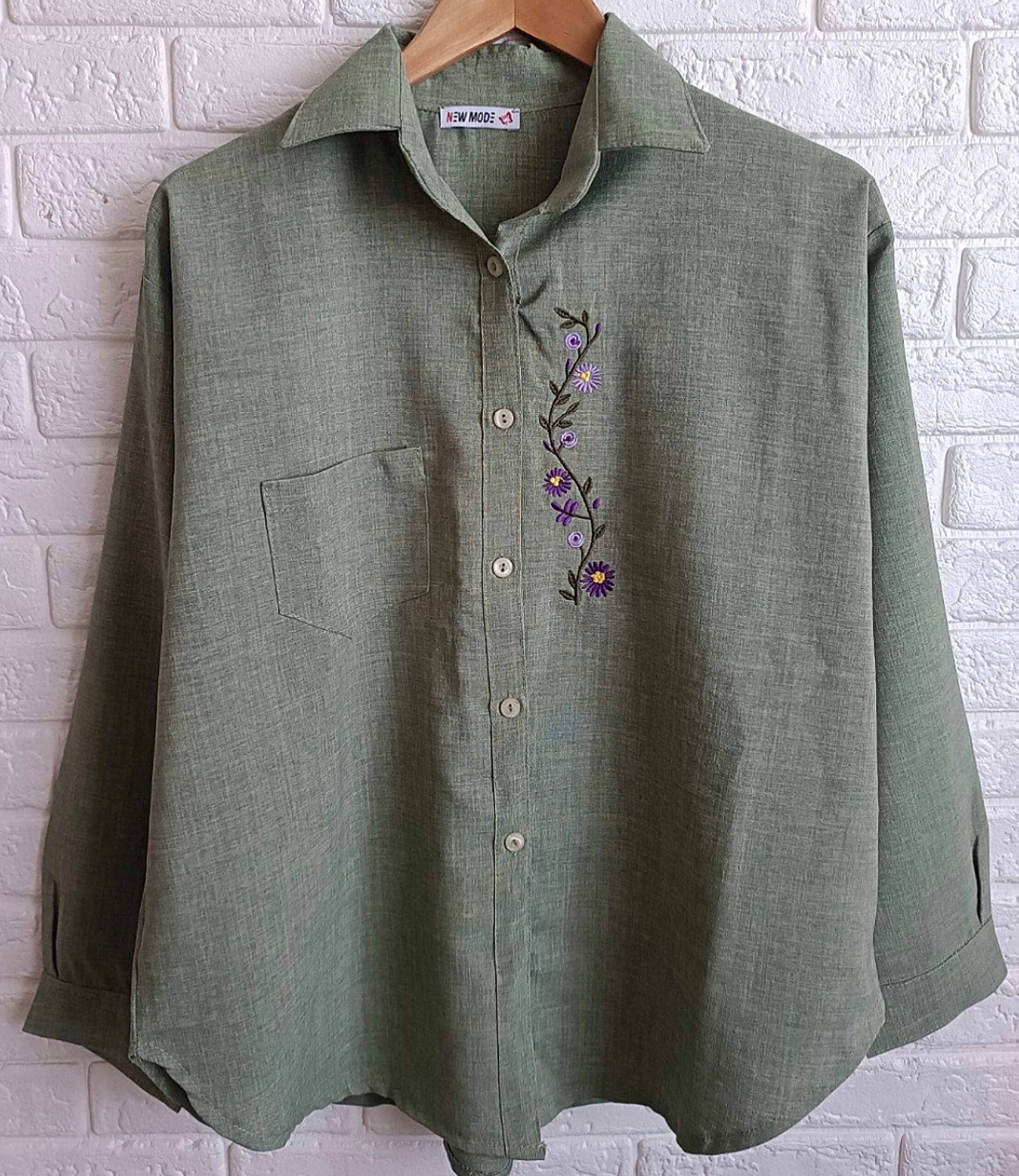 شومیز مانتو لینن نچرال تک جیب یقه دار
