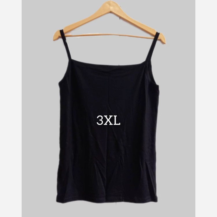 تاپ نخی دوبندی زنانه و دخترانه تک رنگ مشکی سایز 3XL جنس نخ ویسکوز لایکرا بسیار نرم و لطیف و پنبه ای بدون حساسیت باکشسانی بالا دورسینه بدون کشسانی:100 قد تاپ بدون کشسانی: 66