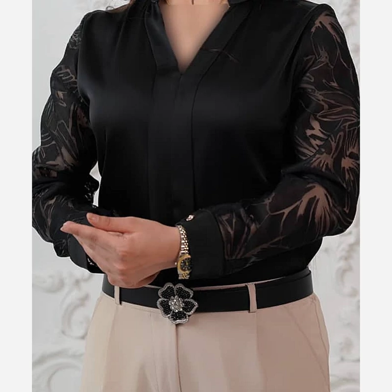 شومیز مجلسی جدید و خاص جنس پارچه : ساتن ژولیت رنگ : مشکی مدل جلوبسته میباشد سایز 3 مناسب 46 و 48 دورسینه : 116 دورباسن : 124 دوربازو : 38 دورمچ : 24 قد شومیز : 70 قد آستین : 60