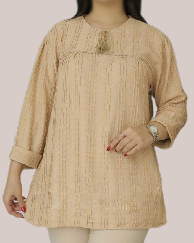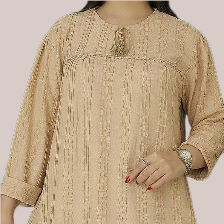 تونیک یقه بندی مراکشی سایز : 2XL جنس : مراکشی کش بافت رنگ : نخودی قد 72 ، دورسینه 112 تا 132 ، دورباسن 122 تا 142 قد آستین از یقه 58 ، دوربازو 48 تا 58