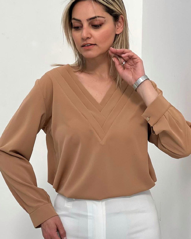 بلوز و شومیز زنانه یقه هفت رنگ نسکافه ای